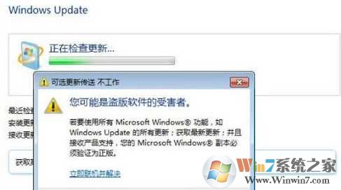不能更新~ 你可能是盗版软件的受害者 ,其实这个微软提示的不够确切,没有激活应该算不上盗版吧。