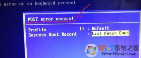电脑开机问题出现post error occurs不要惊慌,其实解决方法就恢复一下BIOS安全默认设置就可以了!