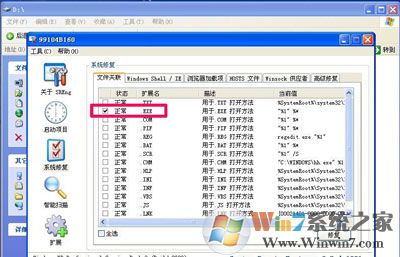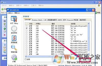 10、返回到上面SREngLdr.exe软件,点击“修复”按钮,修复一下.exe关联,问题也就解决了。