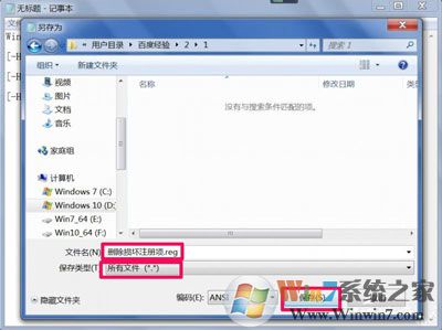 8、输入完成后,将这个文档保存,名字可以随便起,但后缀一定要为.reg类型,如“删除损坏注册项.reg”,保存时选择“所有文件(*.*)”。