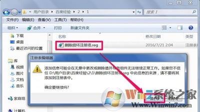9、制成这个注册文件的意思是先删除注册表中被损坏的注册项,双击“删除损坏注册项.reg”这个文件,将其导入注册表。